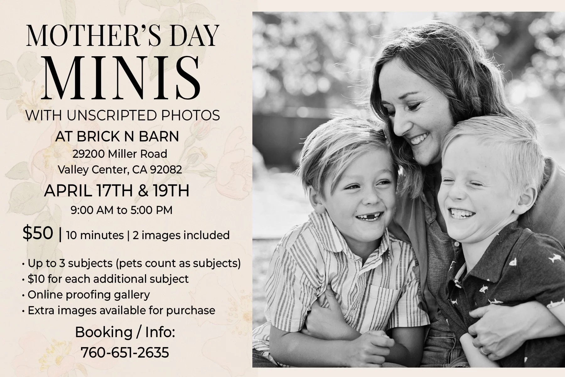 Show Mom she lights up your life with a hands-on candle-making experience at Brick n Barn. Hosted by Cee’s Studio, this guided workshop walks you through every step—from wax melting and fragrance blending to safe pouring, wick setting, and finishing touches. Each student will create a custom candle in a glass vessel, complete with personalized scent, color, and label. While your candle cures, you’ll also learn how to press dried flowers and leaves onto a pillar candle for a beautifully detailed finish. You’ll leave with one handcrafted candle plus one pressed-flower pillar candle—perfect to keep or gift for Mother’s Day. Just $40 per person includes all materials, instruction, dessert, and beverages. Call 760.651.2635 to reserve your spot.